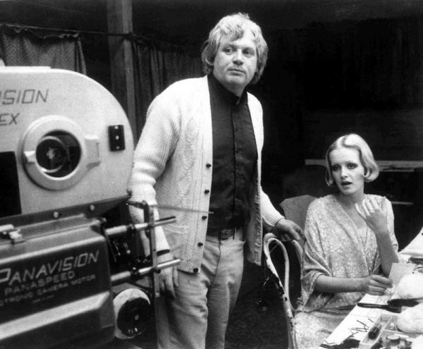 Ken Russell en compagnie du mannequin et actrice anglaise Twiggy sur le plateau de The Boy Friend (1971).