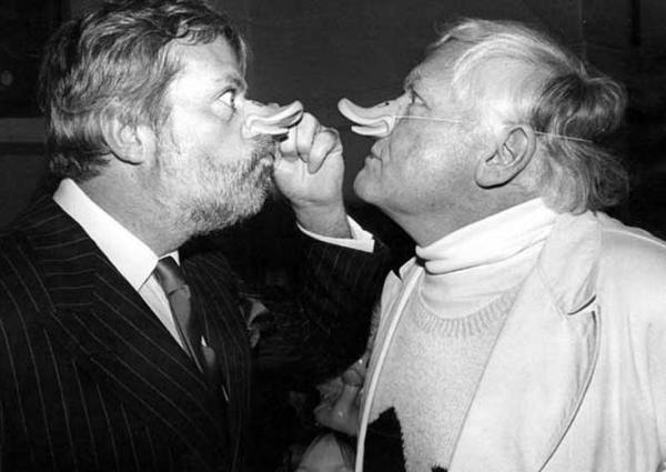 Oliver Reed (1938-1999) et Ken Russell (1927-2011) au Groucho Club en 1985.