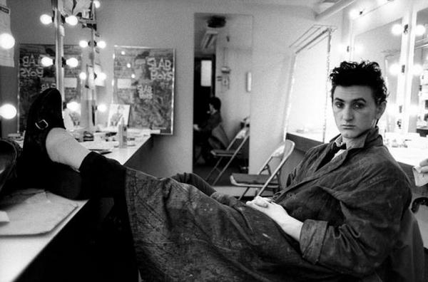 Sean Penn photographié dans sa loge par Mary Ellen Mark lors d'une représentation à Broadway pour la pièce Slab Boys en 1983.
